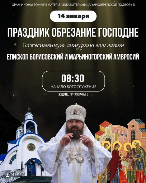 14 января 2026 года в праздник Обрезания Господня, Преосвященнейший Амвросий, епископ Борисовский и Марьиногорский возглавит Божественную литургию в храме иконы…