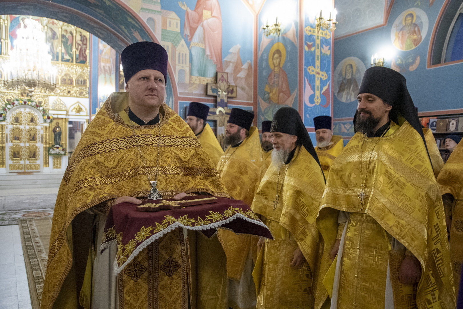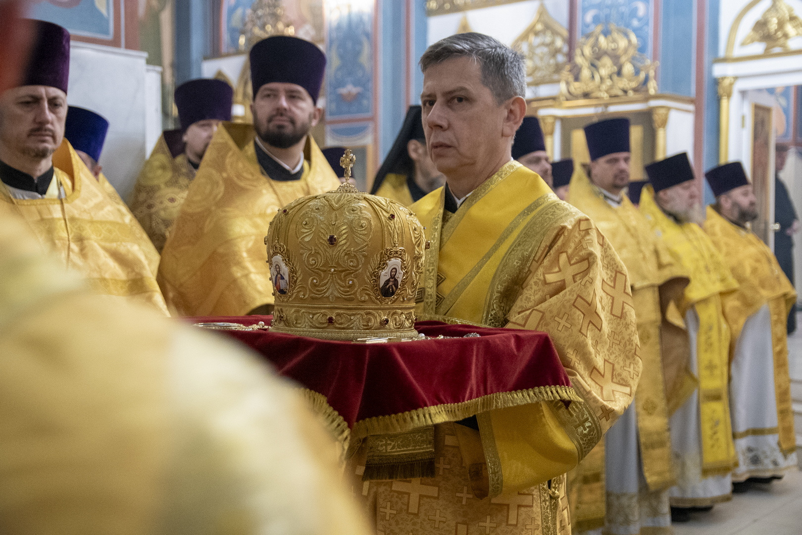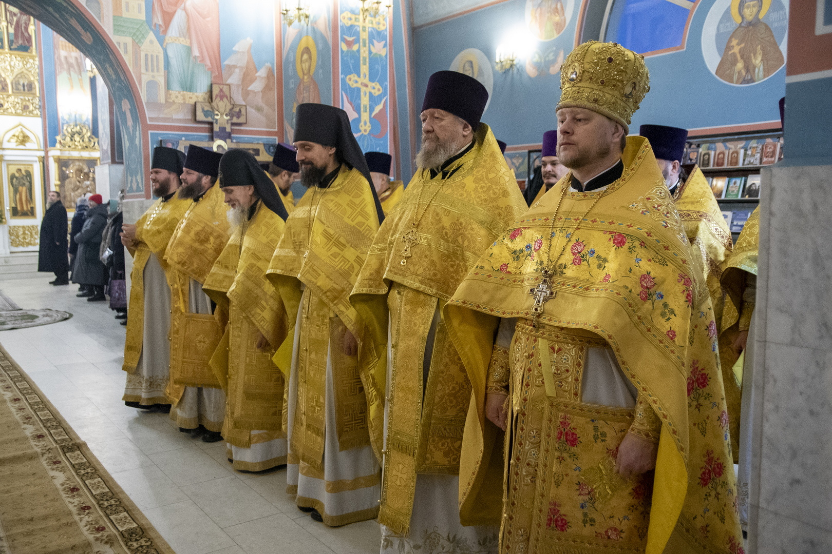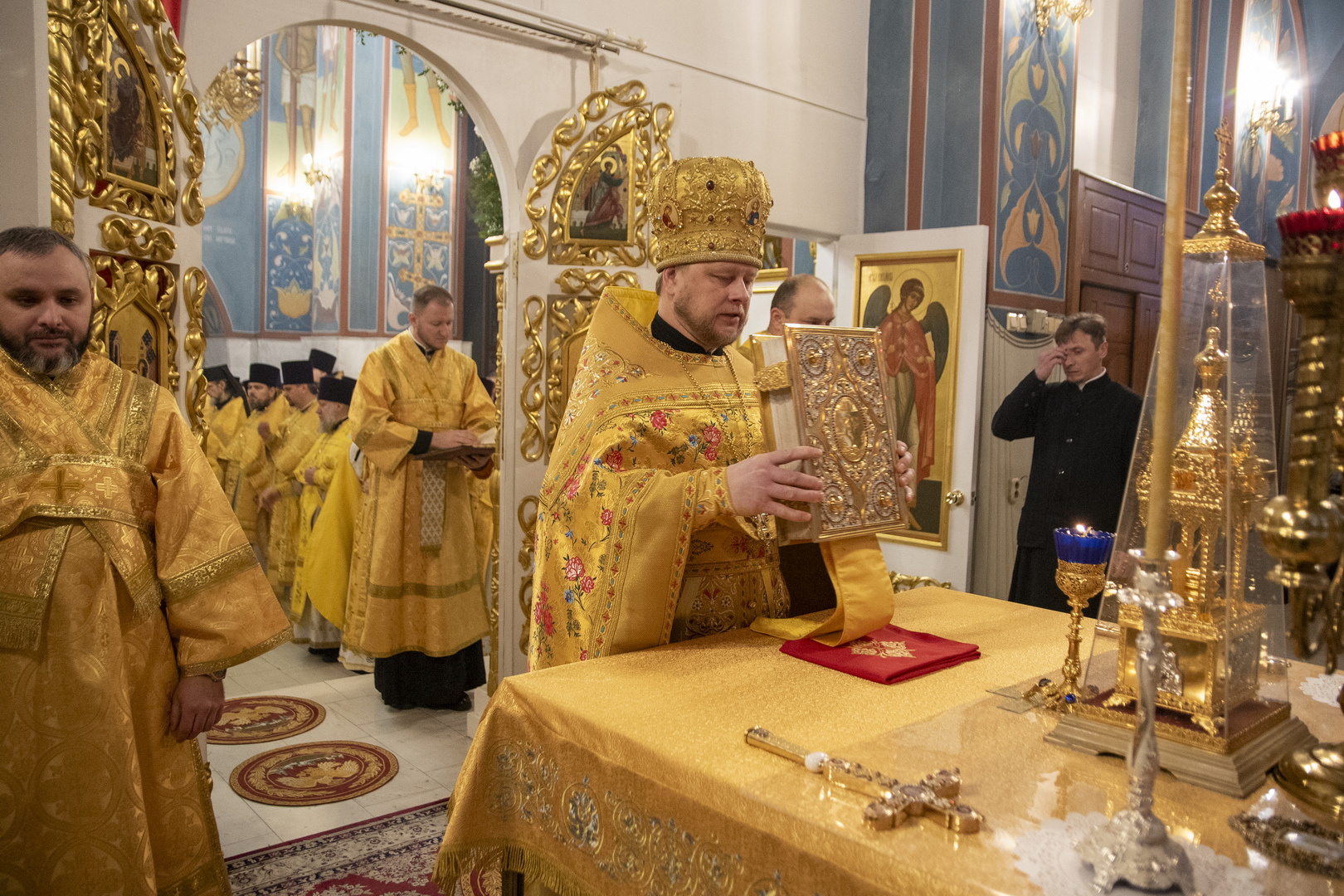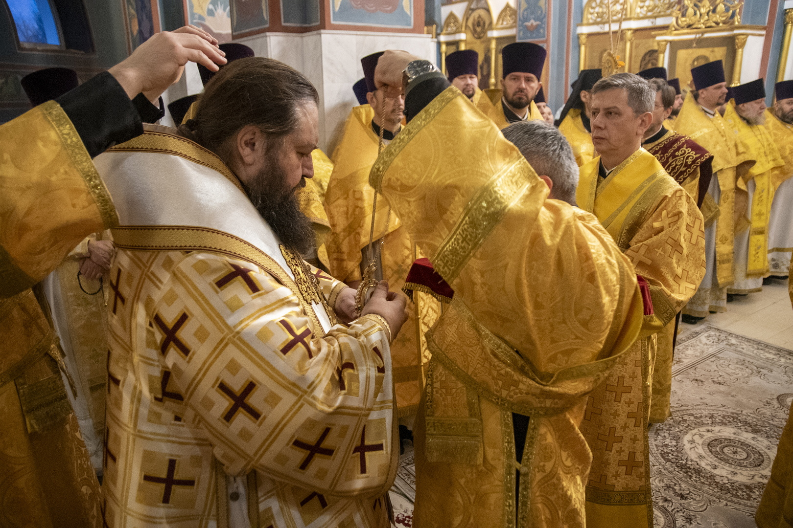 Архипастырям сослужили: секретарь Гомельской епархии протоиерей Георгий Алампиев; секретарь Борисовской епархии протоиерей Сергий Башкиров; духовник Борисовской епархии протоиерей Александр Зимницкий; координатор епархиальных отделов Борисовской епархии протоиерей Александр Вербило; ключарь кафедрального собора Воскресения Христова г. Борисова протоиерей Павел Яцукович; наместник Свято-Никольского мужского монастыря г.Гомеля игумен Феодорит (Золотарев); настоятель Ляденского монастыря в честь Благовещения Пресвятой Богородицы игумен Лавр (Будич); благочинные церковных округов Борисовской епархии, прибывшие на торжество священнослужители Гомельской и Борисовской епархии.