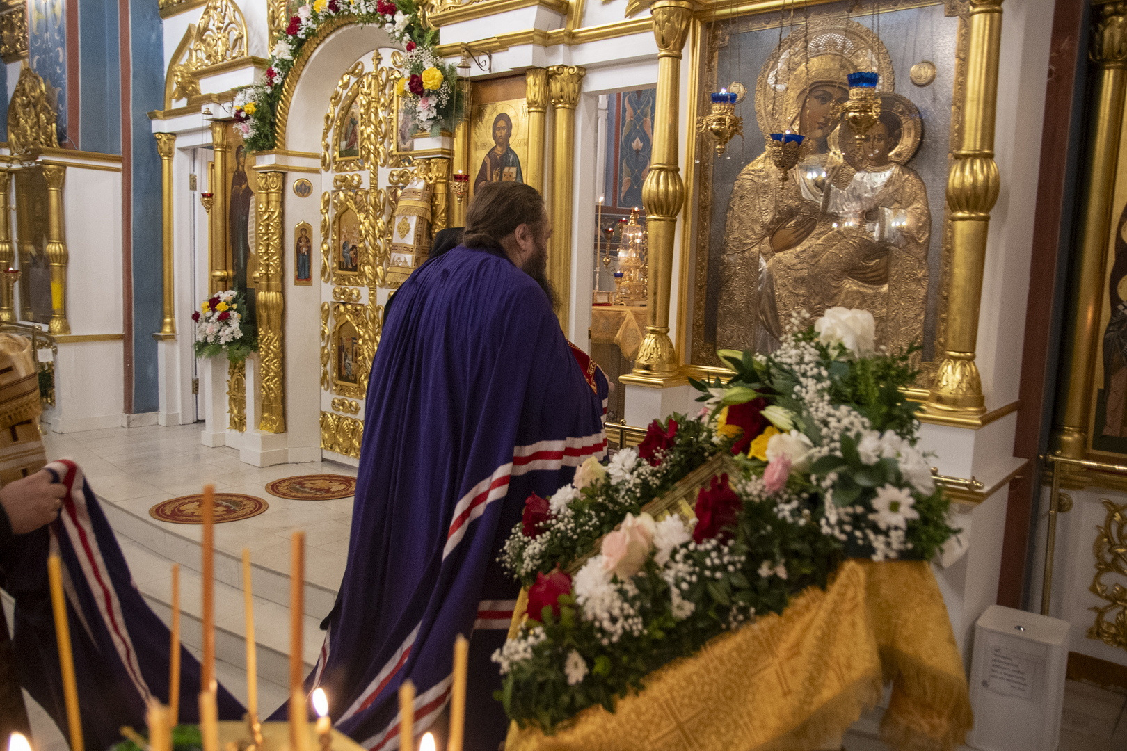 За богослужением молились настоятельница женского монастыря в честь святого апостола и евангелиста Иоанна Богослова деревни Домашаны Смолевичского района игумения Саломия (Овчинникова) и настоятельница женского монастыря в честь святой блаженной Ксении Петербургской в деревне Барань Борисовского района игумения Евпраксия (Зубова) с сестрами обители.