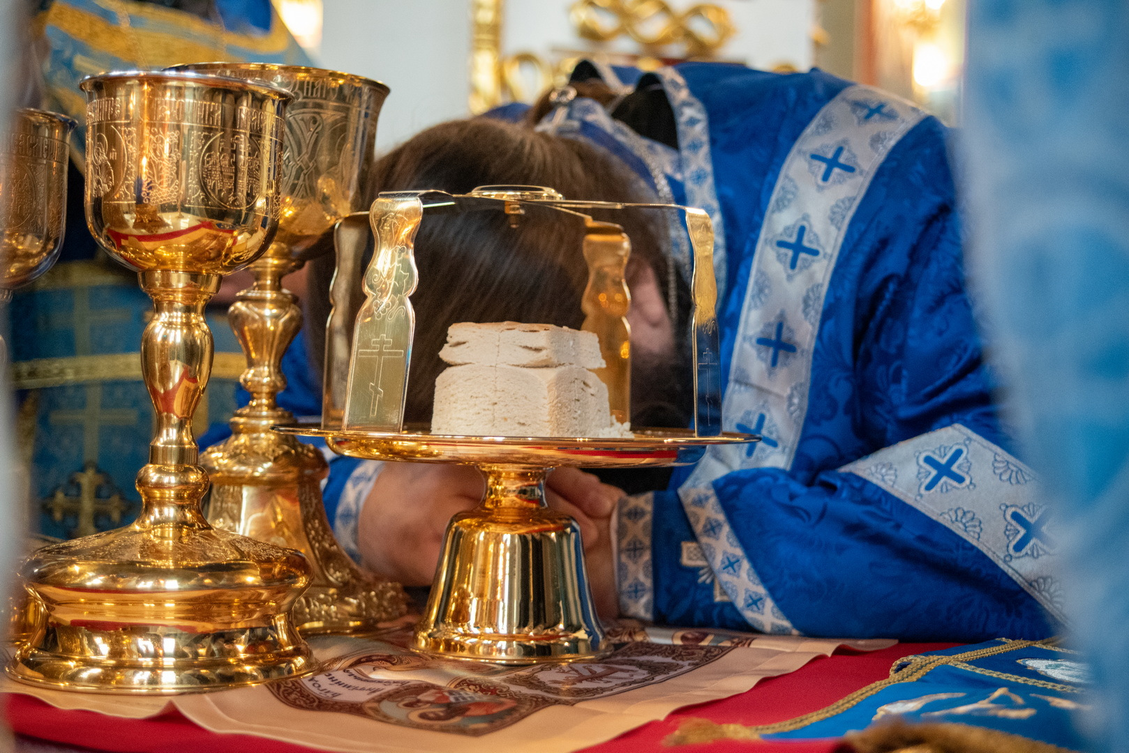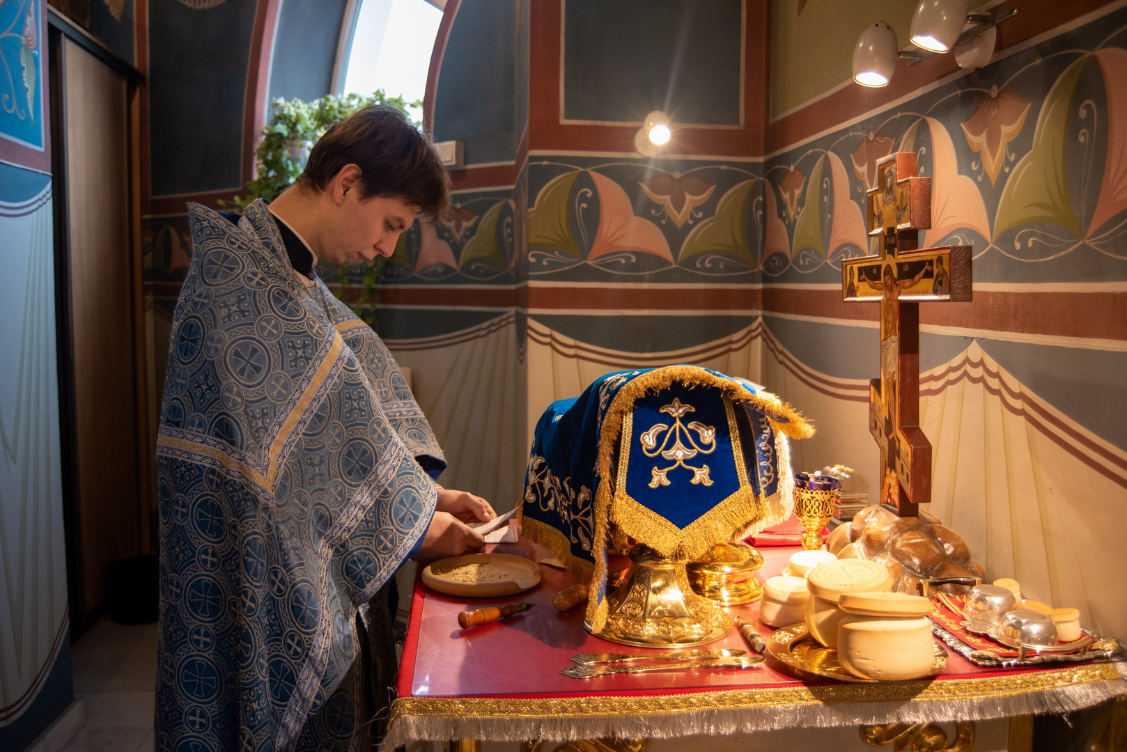 Проповедь перед Причастием произнес клирик прихода иерей Николай Плеханов.