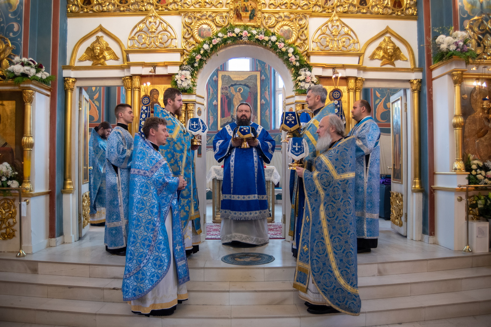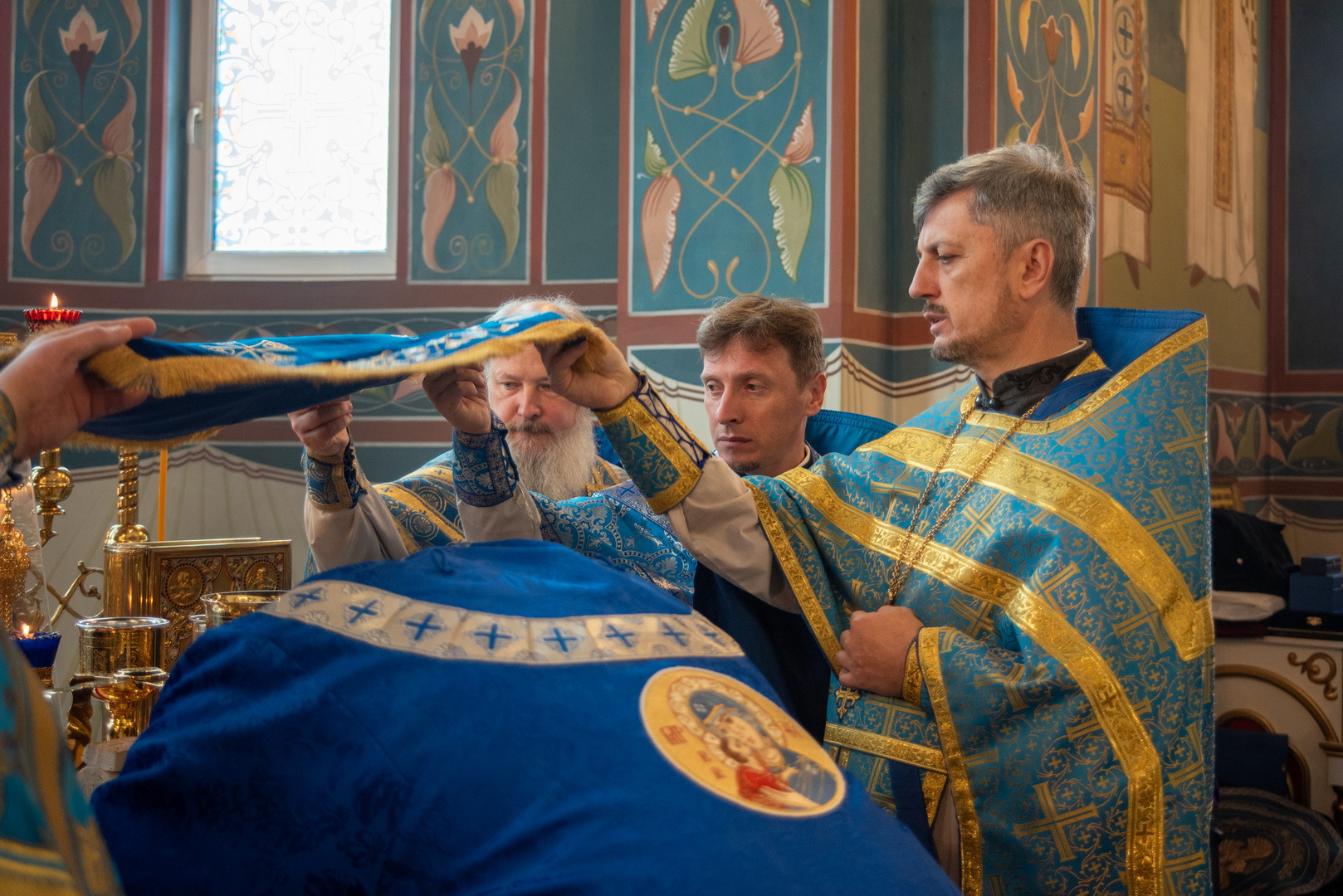 Затем состоялся крестный ход, после которого было совершено славление Пресвятой Богородице.