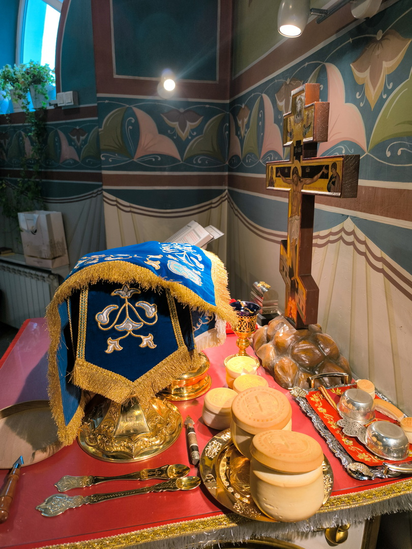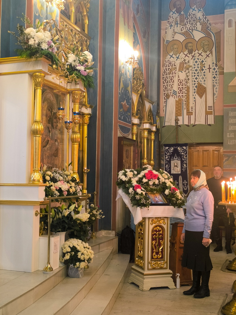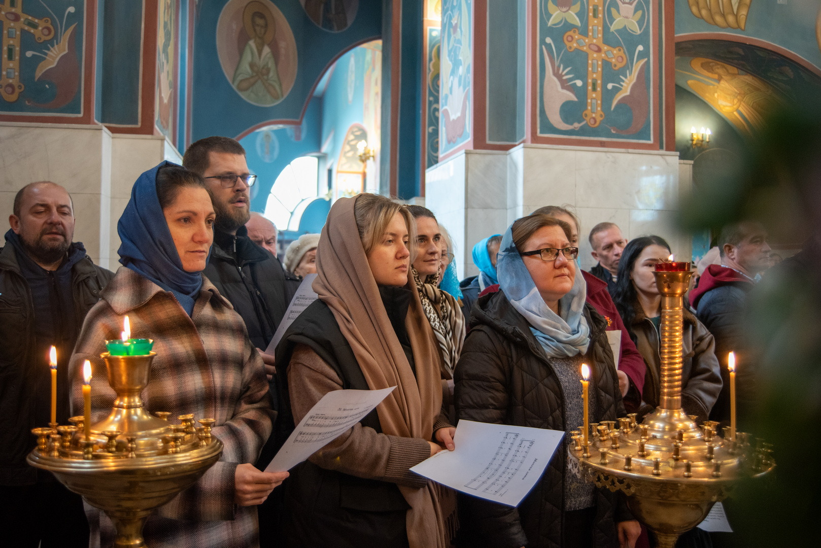 За Литургией были вознесены сугубые молитвенные прошения за иерархов, священнослужителей, монашествующих и мирян Украинской Православной Церкви, а также о даровании мира всему миру.