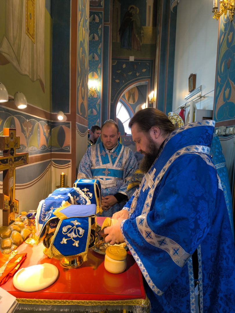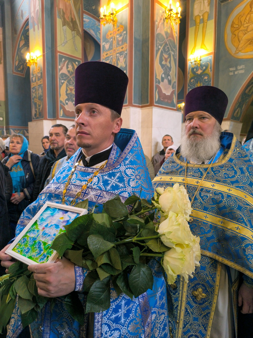 Ключарь храма священник Павел Терешков тепло поблагодарил владыку за архипастырский визит и преподнёс ему на молитвенную память картину с изображением Архиерейского подворья — как молитвенное напоминание о службе в этом святом месте. Также епископу был вручён букет белых роз как символ чистоты и благоговения.