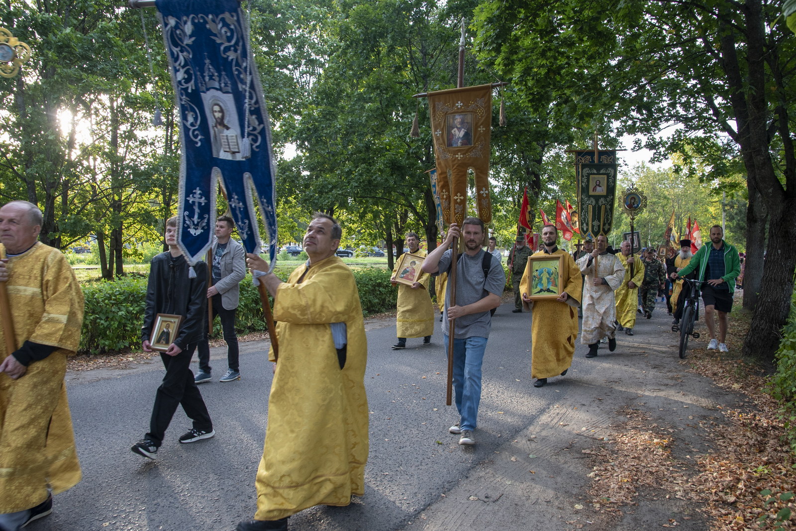 Шествие началось у скульптуры Божией Матери на въезде в город, где Преосвященнейший Амвросий совершил молебен о мире, единстве и благополучии семей. В своем архипастырском слове владыка благословил участников и призвал следовать примеру святых супругов.