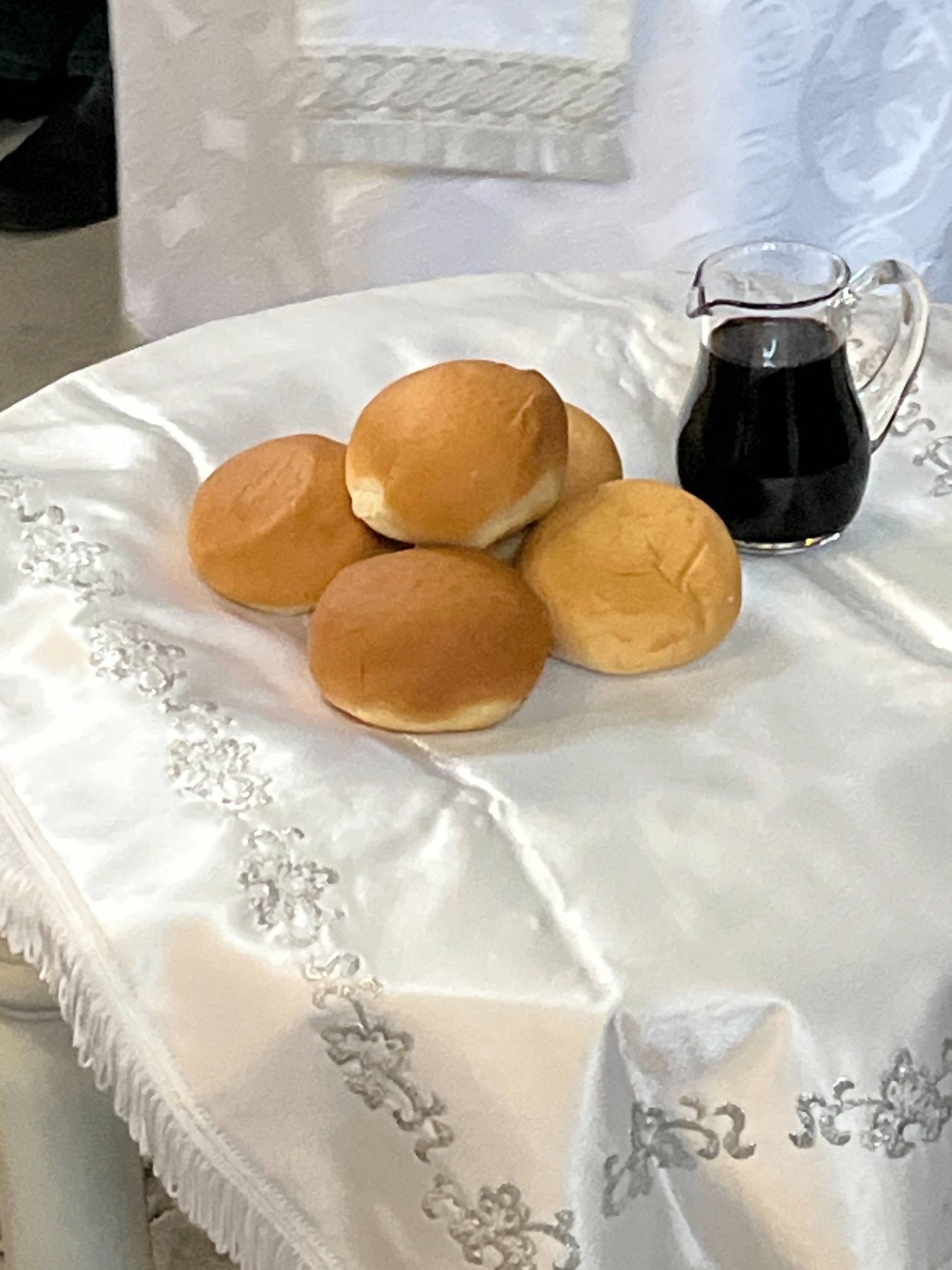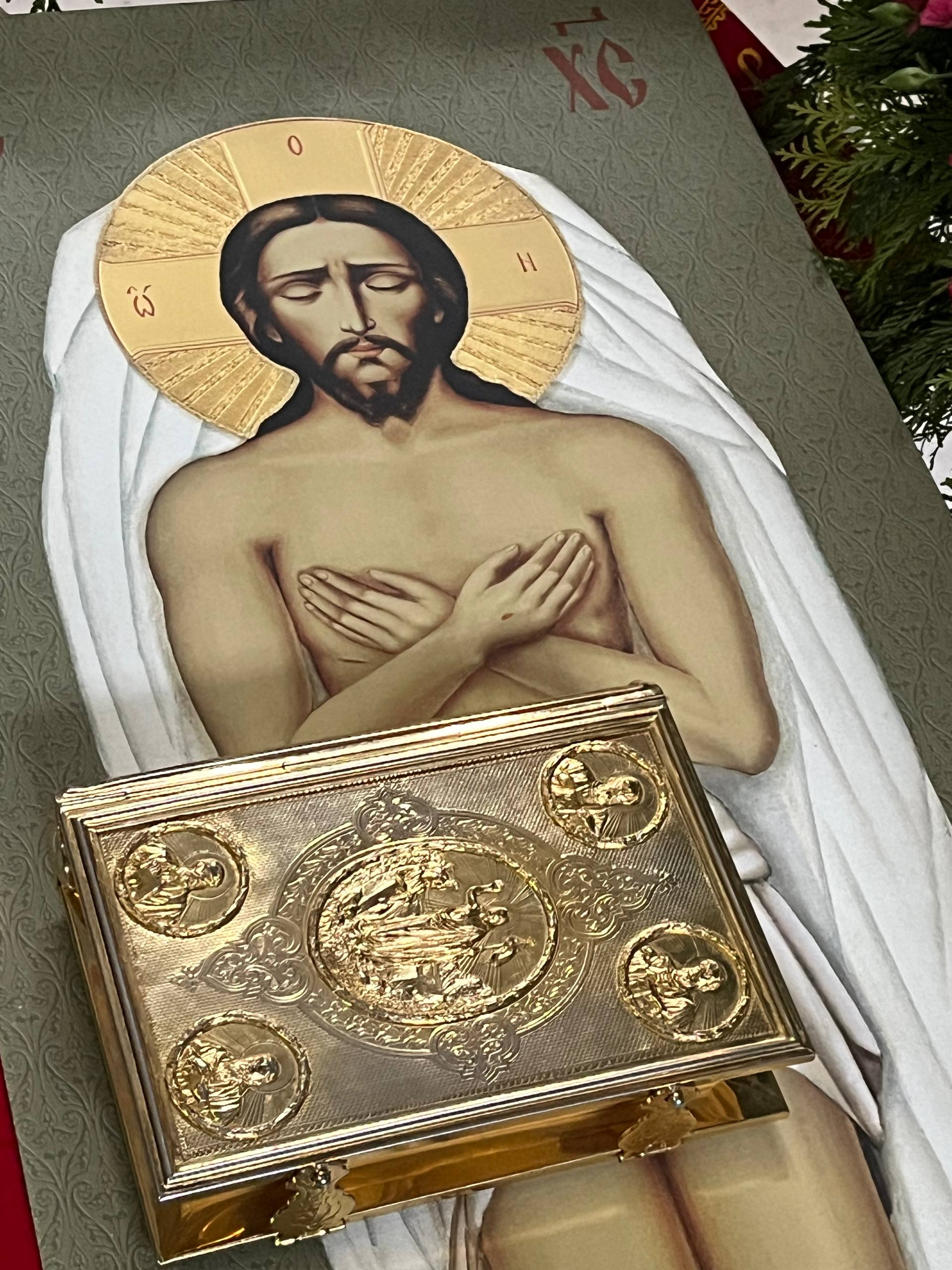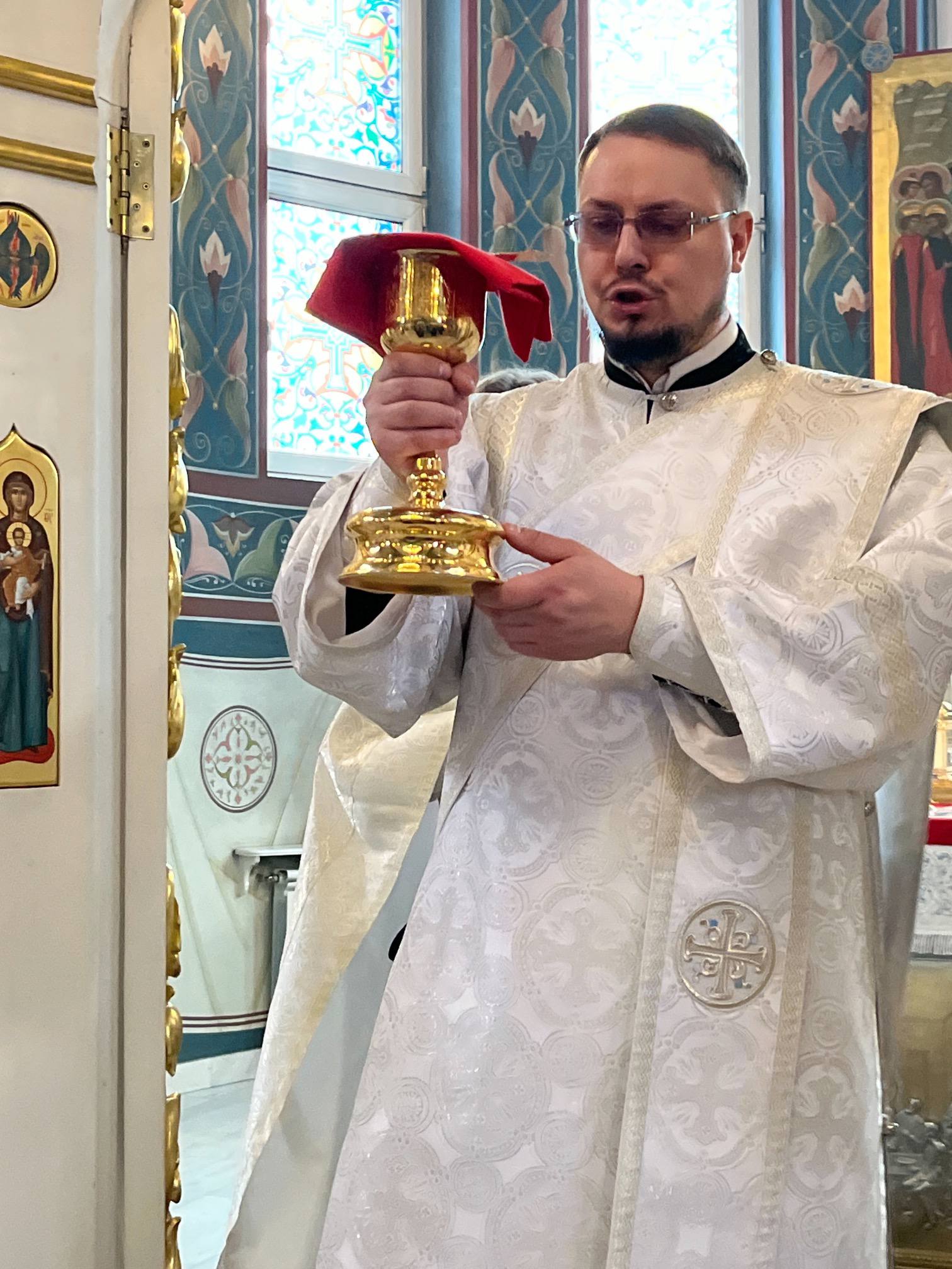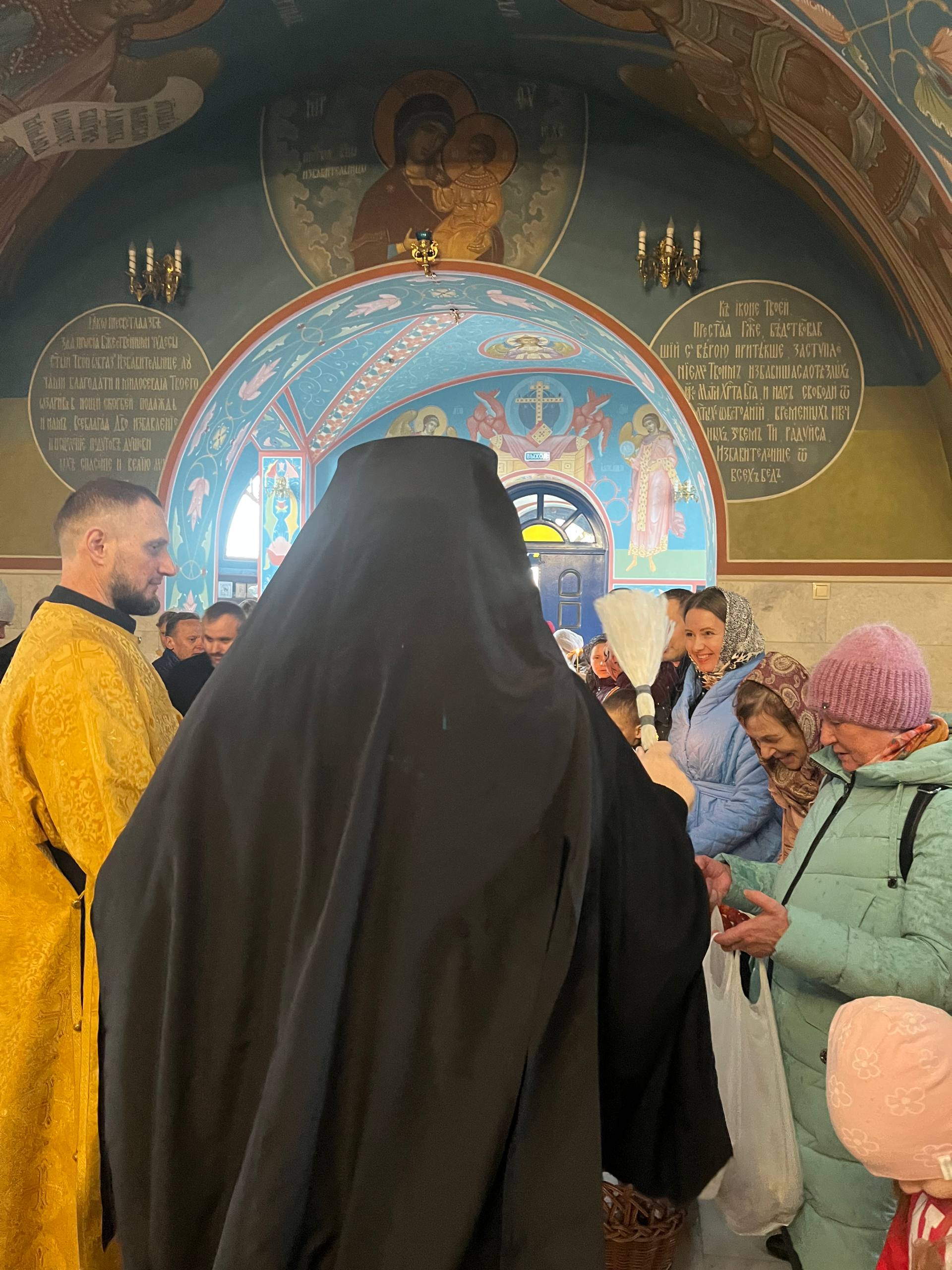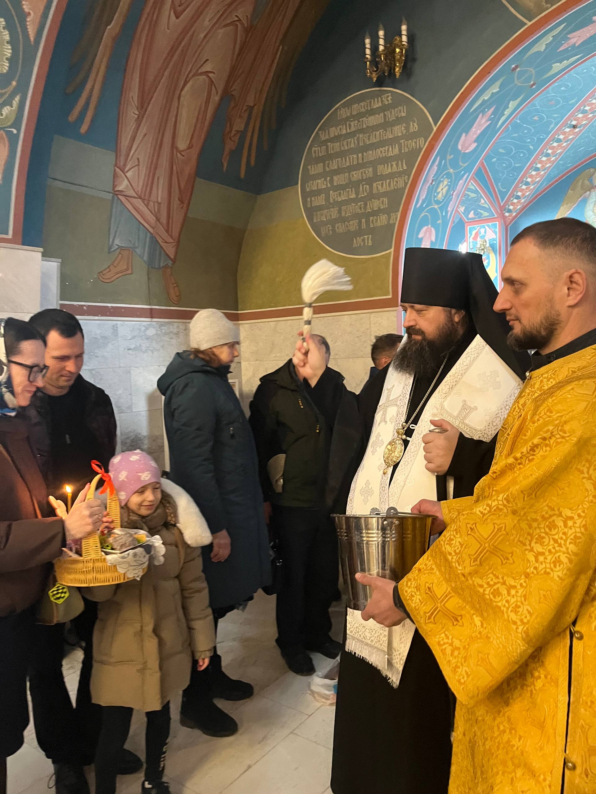 Общая молитва в этот особый день соединила духовенство и прихожан в предчувствии Пасхальной радости. После заамвонной молитвы владыка Амвросий совершил освящение хлеба и вина, а затем — по благочестивой традиции — освятил пасхальную снедь, которую принесли верующие.